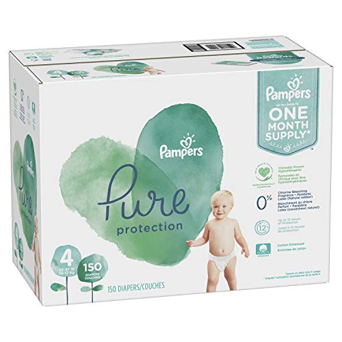 Size 4, 150 Count – Pampers Pure Disposable Baby Diapers, Hypoallergenic and Fragrance Free Protection, ONE Month Supply