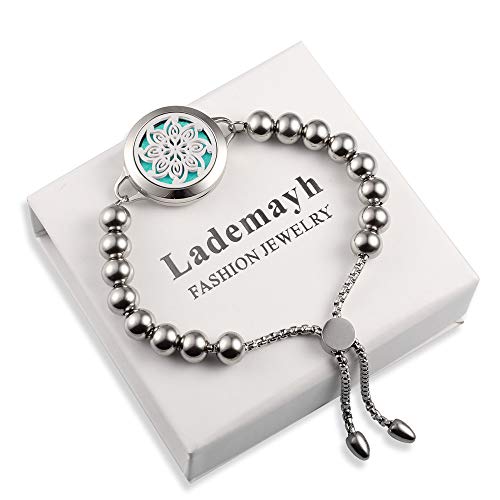 Lademayh Aromatherapy Diffuser Beads Bracelet for Essential Oils Bauhinia Pattern Adjustable Bracelet Jewelry for Women with 25mm Stainless Steel Diffuser Locekt and 12 Felt Pads