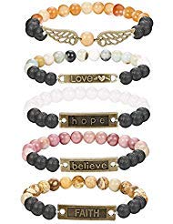 Finrezio 5 PCS Bead Bracelets for Women Aromatherapy Essential Oil Diffuser Natural Lave Rock Stone Bracelet Set 8MM (Style A: 5 PCS of Elastic)