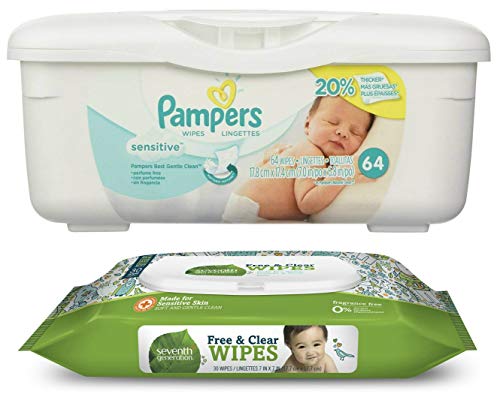 Pampers Sensitive Wipes Tub (64 ct) Bundle with Seventh Generation Flip Top Baby Wipes (30 ct)