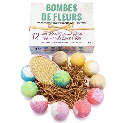 French Bath Bombs Best Gift for Women and Girls 12-100% all Natural – Fresh Fizzy Floral Essential Oils Scents – Rose Lavender Mint Chamomile + Shea Butter + Aloe Best Vegan Spa Day Kit (Dozen)