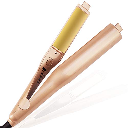 2 in 1 Twist straightener and curling iron,dual voltage hair straightener with Temp Display,1 inch 3D Concave and Convex Ceramic Titanium plate(Gold)
