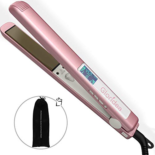 Gloridea 1 inch Titanium Flat Iron with Travel Pouch, Professional Hair Straightener, Instant Heat with Adjustable Temperature 170-450 ℉, Rose Gold Hair Iron with Digital LCD Display and Dual Voltage