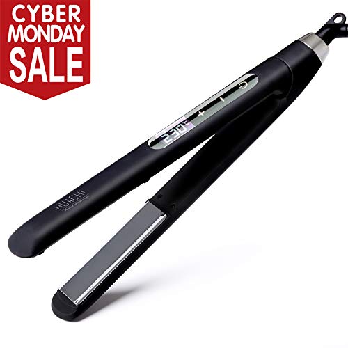 Huachi Flat Iron Titanium Ceramic Hair Straighteners, Hair Iron with 60-minutes Auto Shut Off, Hair Straightening Irons Dual Voltage for Traveling, Intelligent Touch Screen, 1 inch 9Pcs Clips for free