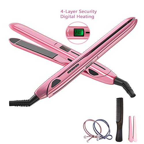 BAIYEA Hair Straightener Professional Flat Iron Curling Wand Anti-Static Ceramic 2 in 1 Straightener and Curling Iron Dual Voltage Adjustable Temp LCD Display for Fine Thick All Hair Types (Red)
