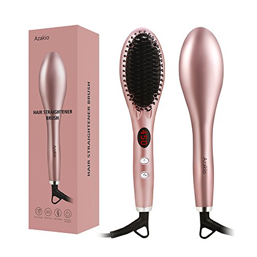 Azakio Hair Straightening Brush Ionic Flat Iron Hair Straightener Brush Straightens with 450℉/230℃ Adjustable Temp & Digital Display, MCH Heating Technology with FREE Heat Resistant Glove