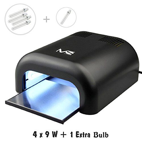 • HIGH EFFICIENCY: 36W Professional UV curing lamp is operated with four 9WUV light bulbs and one Extra Free bulb for replacement.(Gloves NOT included)