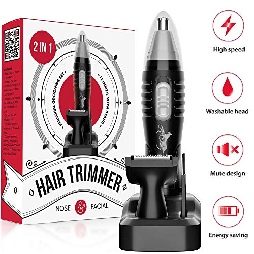 • ADDITIONAL NOZZLE FOR HAIR AND BEARD: With 2 nozzles, this nose hair trimmer for men is the best nose hair trimmer for nose hair and beards. This nose hair remove comes with a stand for easy storage!